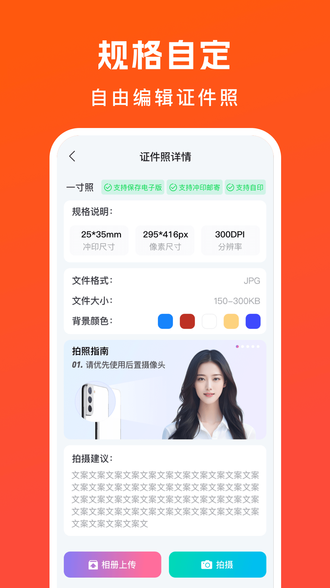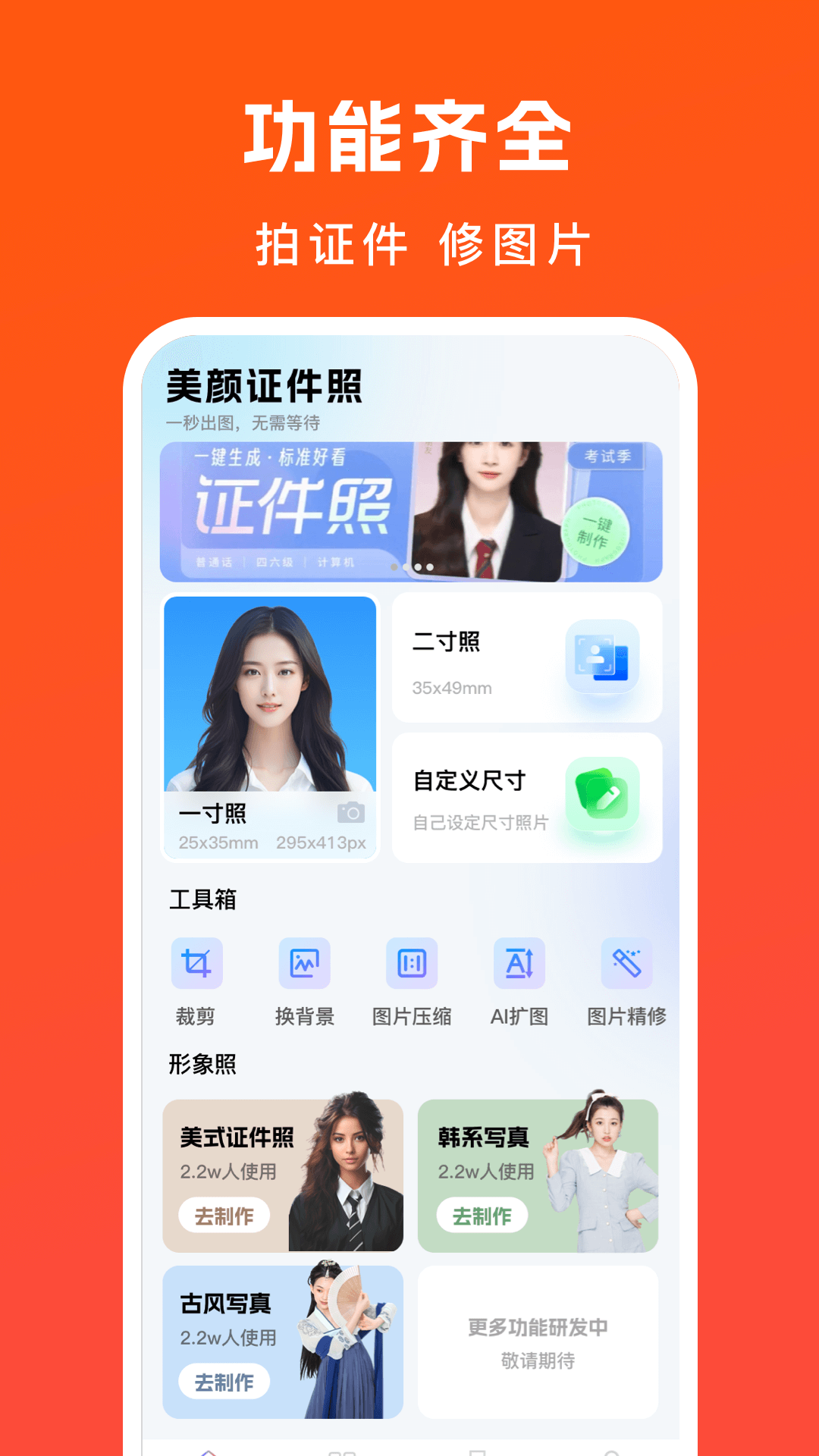 打造优质证件照的贴心助手,核心功能聚焦证件照制作,支持拍摄或上传照片一键转换成标准证件照。