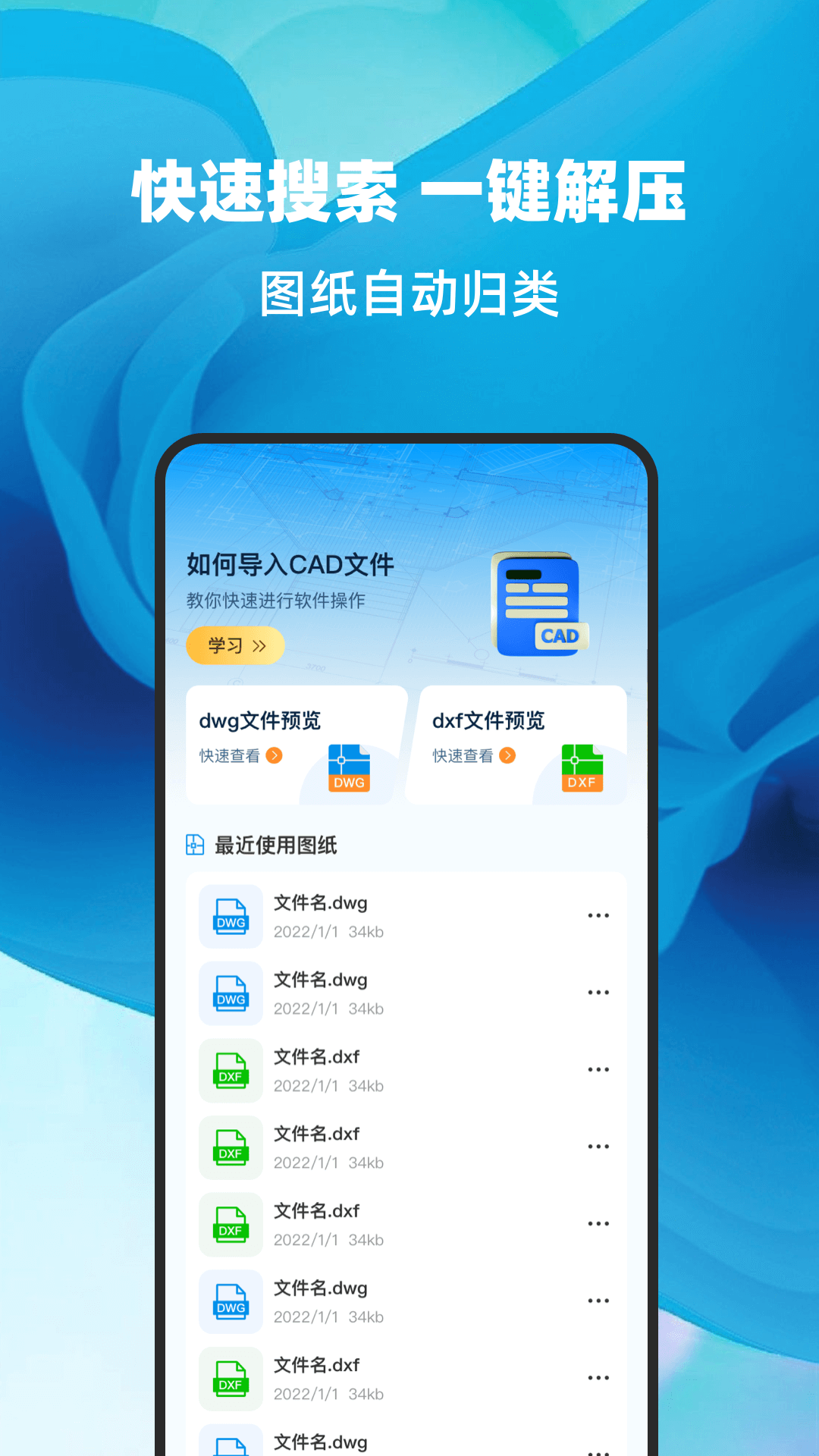 一款快速看图、编辑图纸的CAD软件,可查看编辑CAD图纸。支持历史图纸浏览、查看、收藏、删除和支持分享,帮你实现在手机设备快速办公。